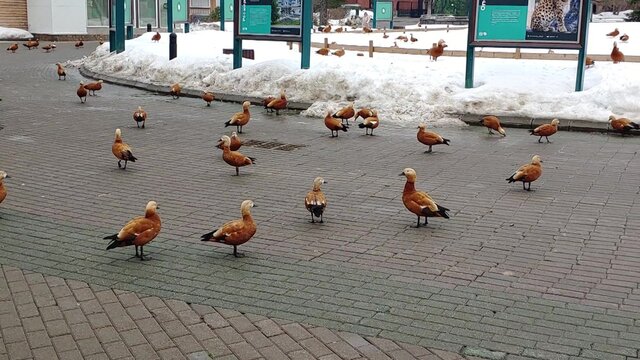 Нашествие огарей в Московском зоопарке в преддверии зимы.