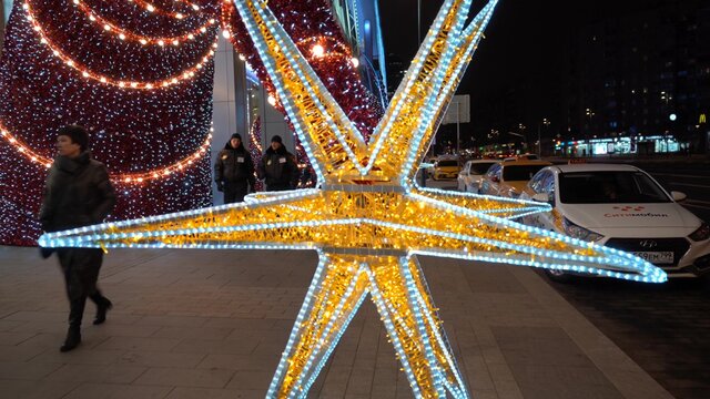 Возле Ростокинского акведука в парке «Яуза» традиционно установили падающие со шлейфом звёзды.