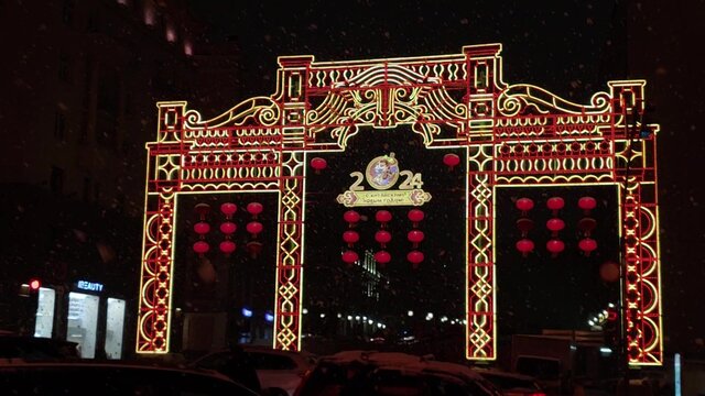 Новогодняя световая арка украсила Главную аллею ВДНХ.