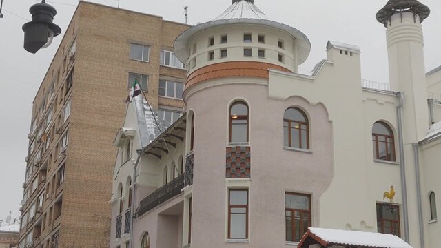 В центре Москвы на крыше посольства Сирии установлен флаг оппозиции.