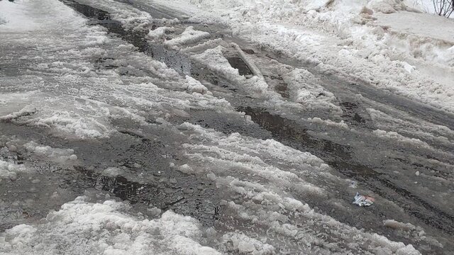 Стремительное таяние снега и лужи в связи с аномально высокой температурой воздуха в Москве