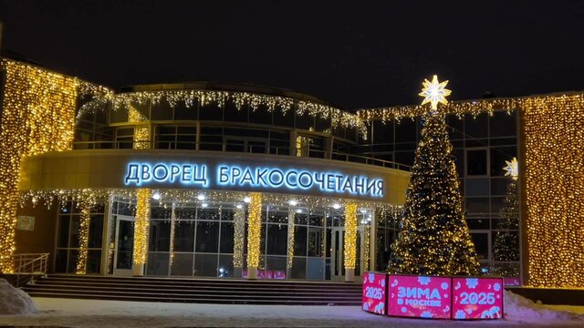 Украшенный к Новому году Дворец бракосочетания №4 на севере столицы.