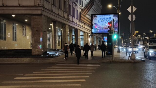 Новогодний трамвай, украшенный снеговиками, курсирует в центре Москвы