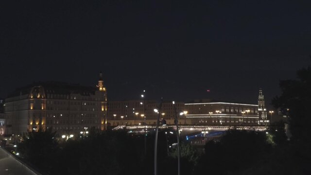 Ночные виды на новогодний Парк Горького с арки Главного входа.