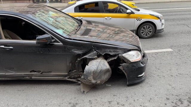 Автомобиль такси врезался в столб на Севастопольском проспекте
