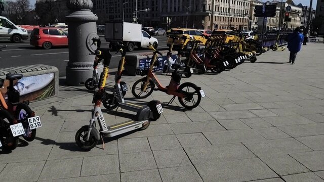 Прокатные электросамокаты установили у Белорусского вокзала.