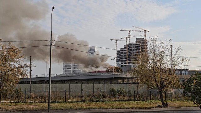 Склад горит в деревне Грибки Мытищинского района Московской области на Промышленном проезде.