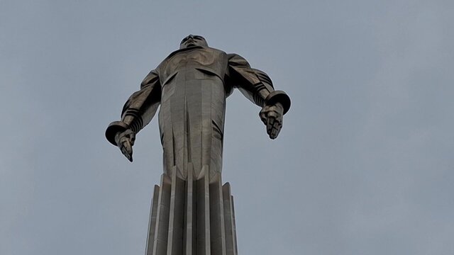 Промывка памятника космонавту Юрию Гагарину на Ленинском проспекте в Москве