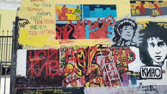 Стена Цоя на Арбате вновь подверглась акту вандализма в центре Москвы