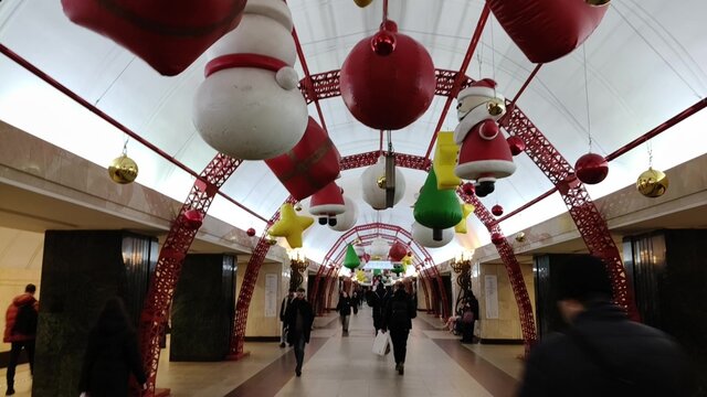 Станция метро "Трубная", украшенная к 90-летию метро.