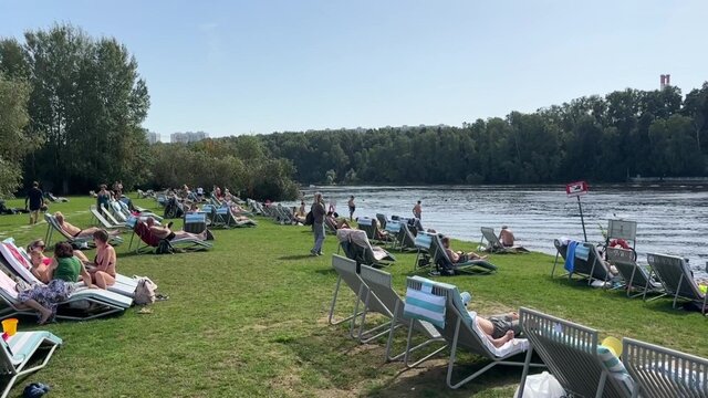 У Джамгаровского пруда на северо-востоке столицы обустроили пляж. Появились раздевалки, лежаки, качели и навесы. Зона отдыха без купания.
