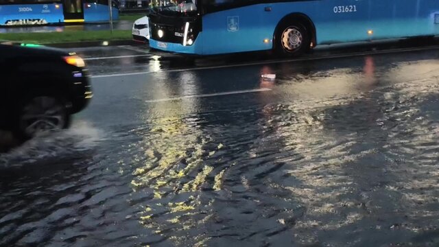 Из-за сильных потоков воды горожанам трудно добираться домой