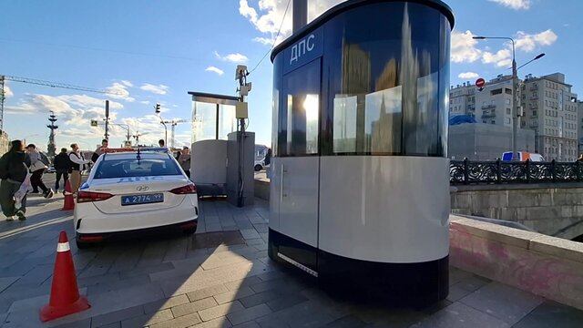 Новая будка ДПС на площади Тверская Застава в центре столицы
