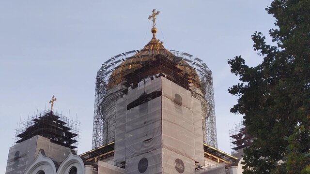 Завершилась реставрация купола Преображенской церкви Храма Христа Спасителя.