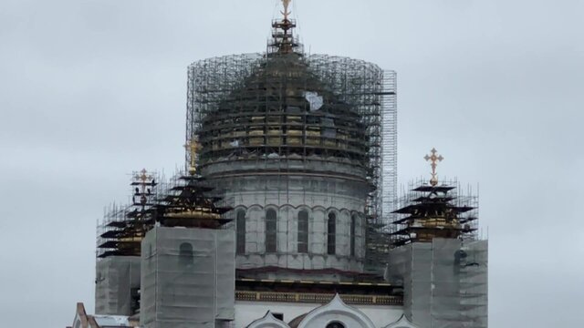 Реставрация куполов Храма Христа Спасителя в центре Москвы
