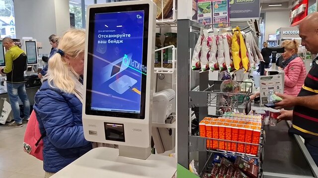 Продукты, крупы, овощи и подсолнечное масло на прилавках в столичном супермаркете.