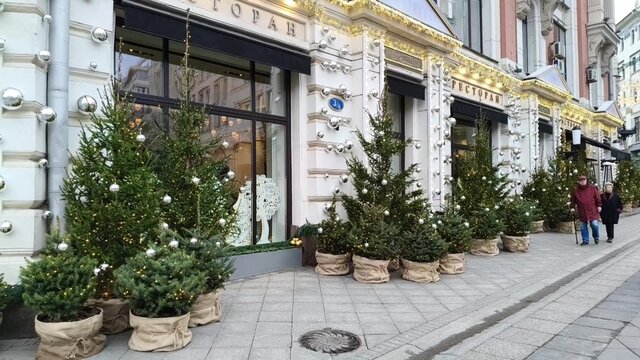 Украшенные к Новому году витрины магазинов на ул. Тверская
