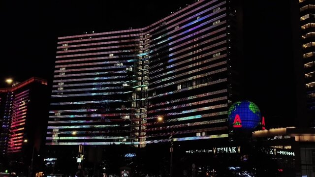 Мультимедийная подсветка ко Дню народного единства на домах-книжках на Новом Арбате.