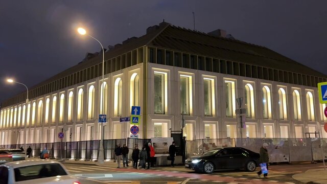 Подсветка фасадов строящихся зданий в цветах российского флага