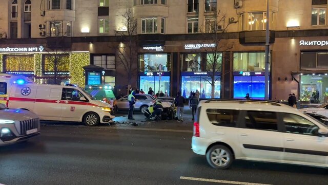 Автомобиль «Фольксваген» и машина скорой помощи столкнулись на ул. Чертановская на юге Москвы.