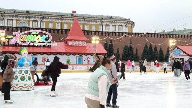 На ГУМ-катке уже идет подготовка льда, а на ГУМ-ярмарке установили аттракционы и киоски.
