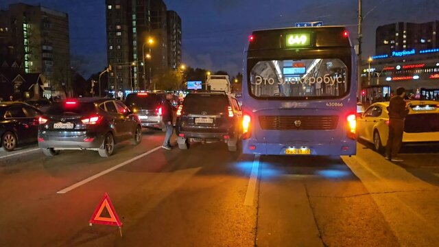 Последствия ДТП с участием автомобилей «Mazda» и «Skoda» на пересечении улиц Вешняковская и Старый Гай на востоке Москвы.