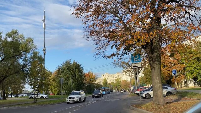 Рекламные прицепы на городских парковках вдоль улиц Москвы