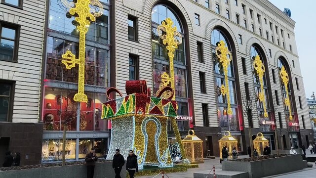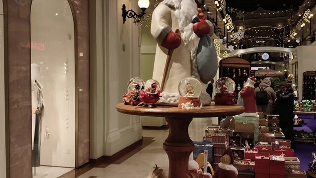Продажа новогодних игрушек с героями советских мультфильмов в Центральном детском магазине.