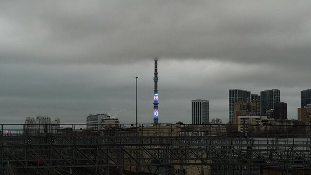 Шпиль телебашни «Останкино» скрывается в тучах.