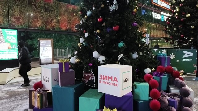 Транспортная новогодняя ёлка у здания Цирка Никулина на Цветном бульваре