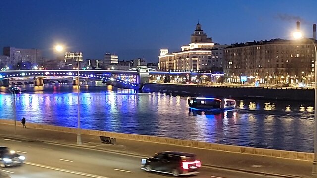 В центре Москвы в районе Замоскворечье пешеходный мост украсила новогодняя подсветка.