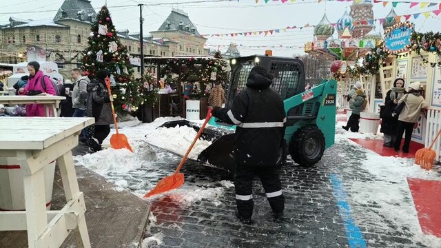 Устранение последствий снегопада коммунальщиками и жителями Москвы.