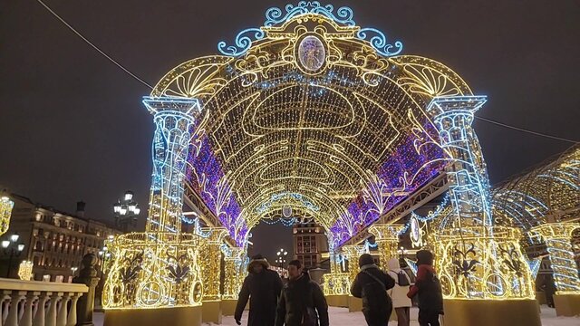 Предновогодняя обстановка на Красной площади и на улице Никольская в центре Москвы.