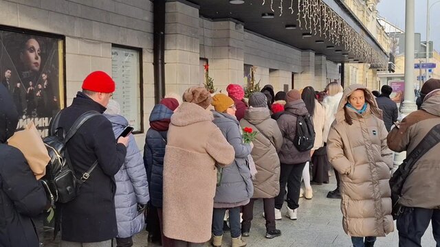 Обстановка возле театра им. Пушкина на Тверском бульваре, где проходит прощание с народной артисткой РФ Верой Алентовой.