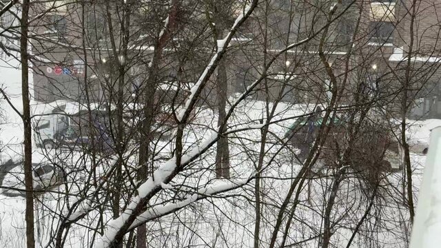 Колонна снегоуборочной техники вышла на улицы Москвы во время снегопада
