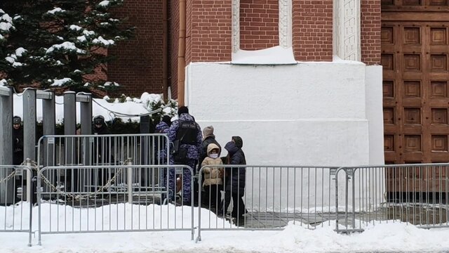 Очередь к весам "в мандаринах" на улице Арбат в рамках проекат "Зима в Москве"