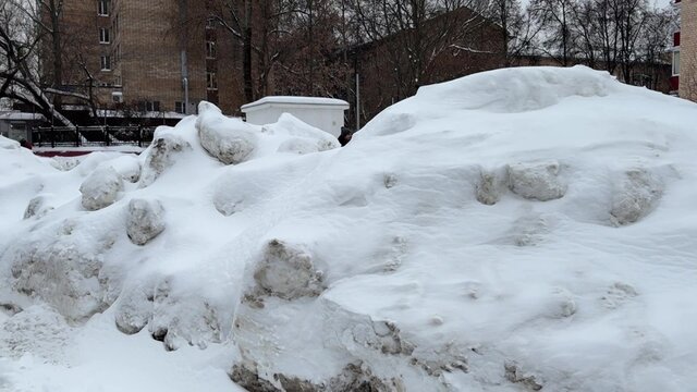 Очередь из гружённых снегом самосвалов к снегоплавильному пункту «Черёмушки»
