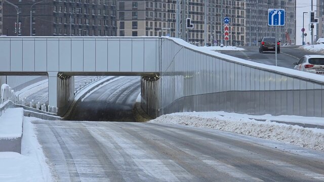 Автомобиль сковало льдом после коммунальной аварии в Одинцово