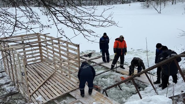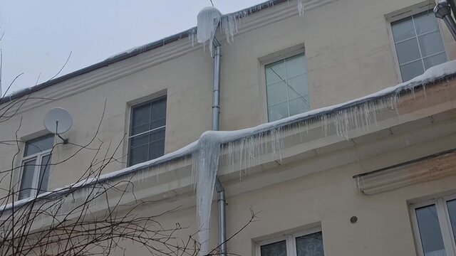 Сосульки на уличных фонарях в парке на юге Москвы.