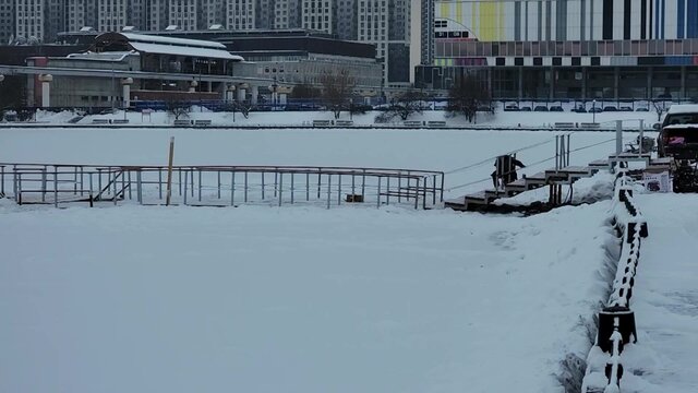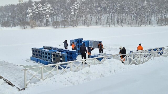 Подготовка купели к Крещению на Останкинском пруду на северо-востоке Москвы.