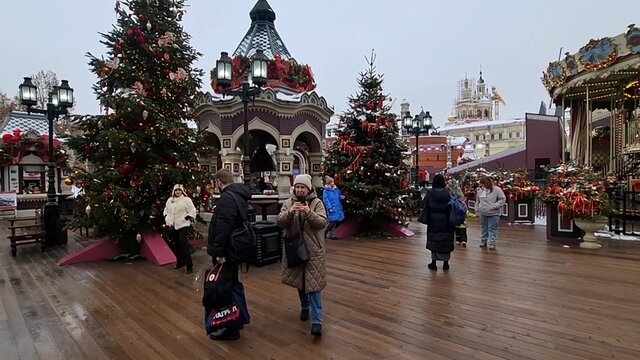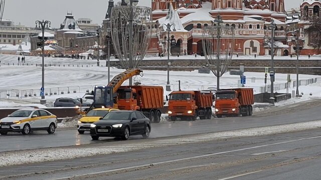 Работа коммунальных служб по противогололедной обработке в центре Москвы
