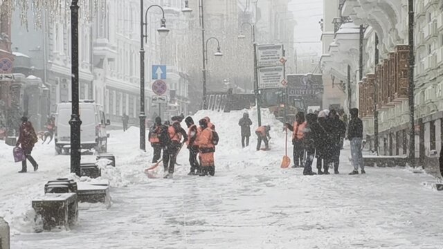 Коммунальная техника вышла на очистку улиц от снега.