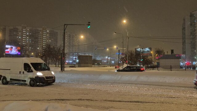Вечерний сильный снегопад в Москве 19 февраля.