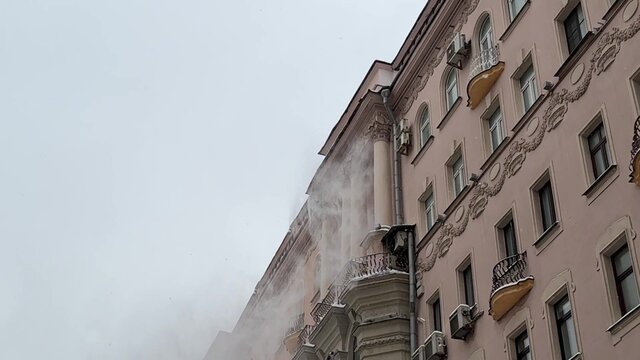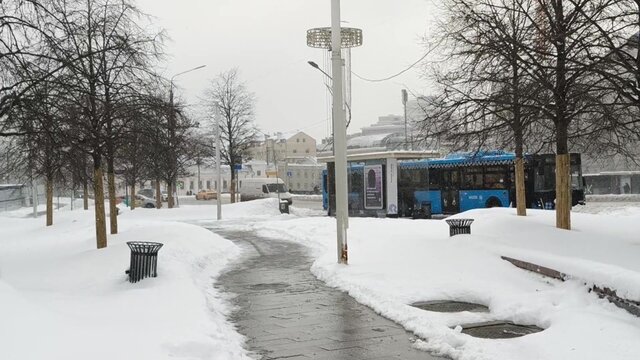 Временное хранение снега вновь организовано на Миусской площади в центре Москвы.