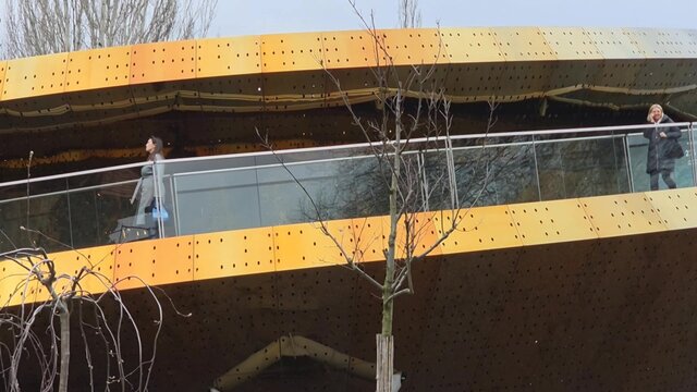 Очистка от снега фасадов и кровель павильонов на ВДНХ.