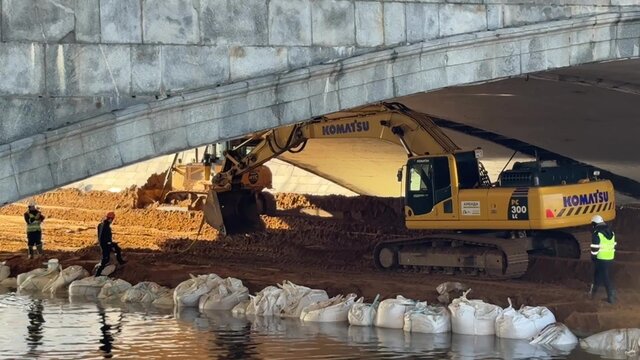 Ход строительства нового пешеходного моста на Болотной набережной.