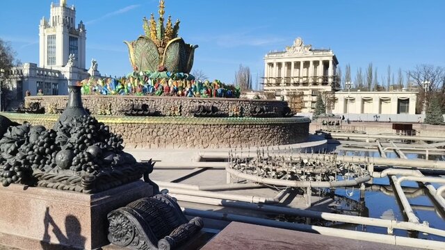Промывка пешеходных зон на ВДНХ после зимы.
