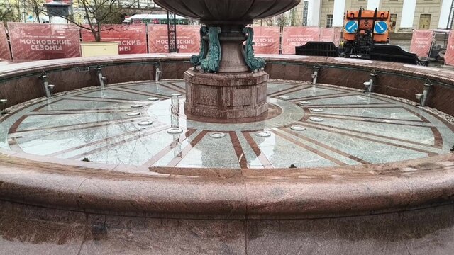 Весенняя промывка театрального фонтана в центре Москвы.