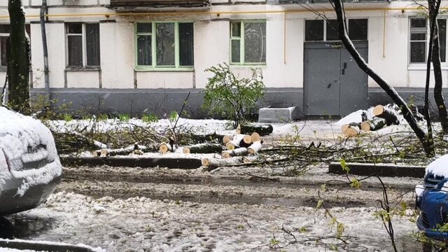 Упавшие после снегопада деревья на востоке Москвы