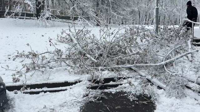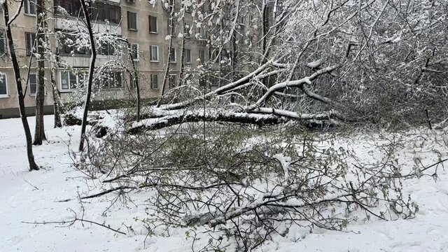 На ул. Чертановская возле автобусной остановки «Чертаново Центральное» упало несколько деревьев